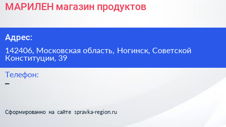 МАРИЛЕН, магазин продуктов по адресу 142406, Московская область, Ногинск, Советской Конституции, 39 в дальнейшем Организация, размещена в следующих категориях: