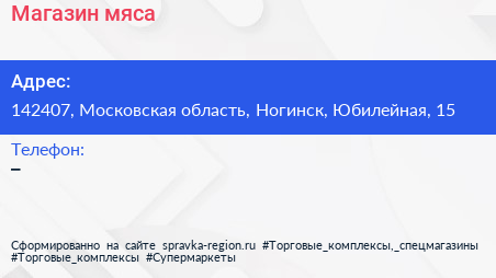 Магазин мяса по адресу 142407, Московская область, Ногинск, Юбилейная, 15 в дальнейшем Организация, размещена в следующих категориях: