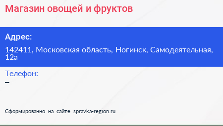 Магазин овощей и фруктов по адресу 142411, Московская область, Ногинск, Самодеятельная, 12а в дальнейшем Организация, размещена в следующих категориях: