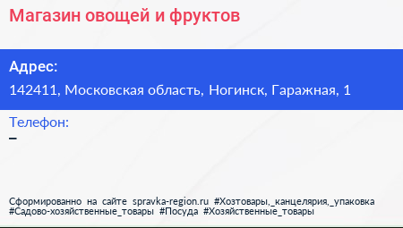 Магазин овощей и фруктов по адресу 142411, Московская область, Ногинск, Гаражная, 1 в дальнейшем Организация, размещена в следующих категориях: