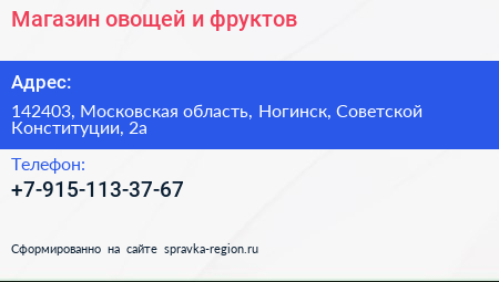 Магазин овощей и фруктов по адресу 142403, Московская область, Ногинск, Советской Конституции, 2а в дальнейшем Организация, размещена в следующих категориях: