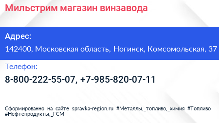 Мильстрим, магазин винзавода по адресу 142400, Московская область, Ногинск, Комсомольская, 37 в дальнейшем Организация, размещена в следующих категориях: