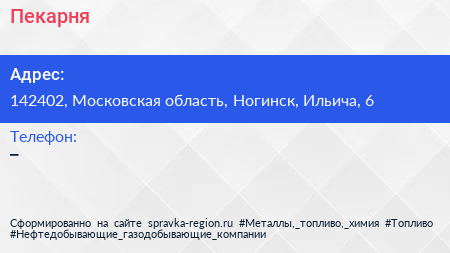 Пекарня по адресу 142402, Московская область, Ногинск, Ильича, 6 в дальнейшем Организация, размещена в следующих категориях: