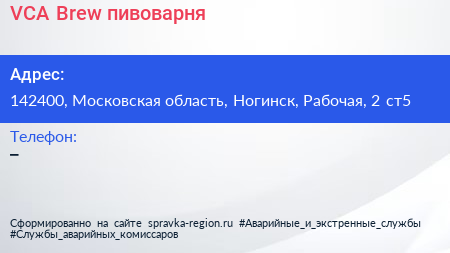VCA-Brew, пивоварня по адресу 142400, Московская область, Ногинск, Рабочая, 2 ст5 в дальнейшем Организация, размещена в следующих категориях: