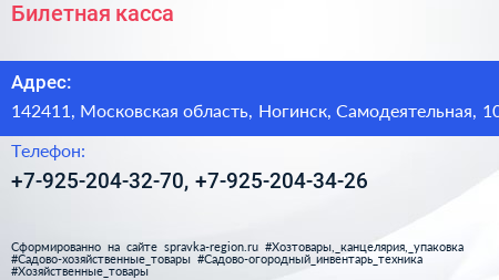 Билетная касса по адресу 142411, Московская область, Ногинск, Самодеятельная, 10 в дальнейшем Организация, размещена в следующих категориях: