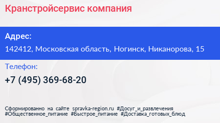 Кранстройсервис, компания по адресу 142412, Московская область, Ногинск, Никанорова, 15 в дальнейшем Организация, размещена в следующих категориях:
