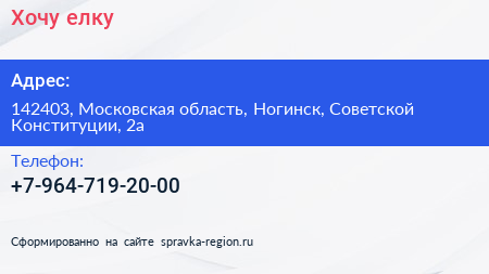 Хочу елку по адресу 142403, Московская область, Ногинск, Советской Конституции, 2а в дальнейшем Организация, размещена в следующих категориях: