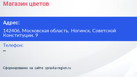 Магазин цветов по адресу 142406, Московская область, Ногинск, Советской Конституции, 9 в дальнейшем Организация, размещена в следующих категориях: