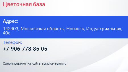 Цветочная база по адресу 142403, Московская область, Ногинск, Индустриальная, 40с в дальнейшем Организация, размещена в следующих категориях: