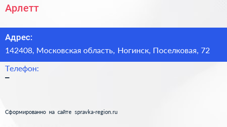 Арлетт по адресу 142408, Московская область, Ногинск, Поселковая, 72 в дальнейшем Организация, размещена в следующих категориях: