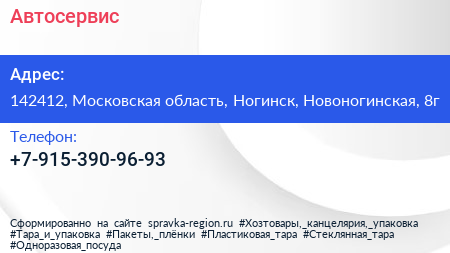 Автосервис по адресу 142412, Московская область, Ногинск, Новоногинская, 8г в дальнейшем Организация, размещена в следующих категориях:
