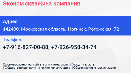 Эконом скважина, компания по адресу 142400, Московская область, Ногинск, Рогожская, 72 в дальнейшем Организация, размещена в следующих категориях: