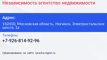 Независимость, агентство недвижимости по адресу 142410, Московская область, Ногинск, Электростальское шоссе, 1а в дальнейшем Организация, размещена в следующих категориях: