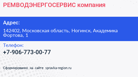 РЕМВОДЭНЕРГОСЕРВИС, компания по адресу 142402, Московская область, Ногинск, Академика Фортова, 1 в дальнейшем Организация, размещена в следующих категориях: