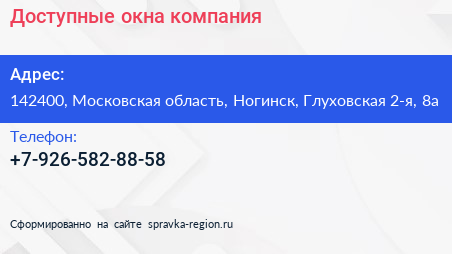 Доступные окна, компания по адресу 142400, Московская область, Ногинск, Глуховская 2-я, 8а в дальнейшем Организация, размещена в следующих категориях:
