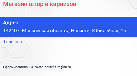 Магазин штор и карнизов по адресу 142407, Московская область, Ногинск, Юбилейная, 15 в дальнейшем Организация, размещена в следующих категориях: