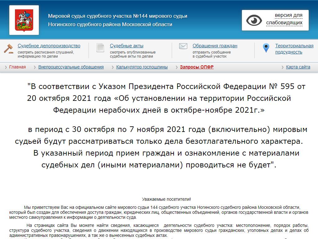 Мировые судьи Ногинского района по адресу 142401, Московская область, Ногинск, Октябрьская, 85д в дальнейшем Организация, размещена в следующих категориях: