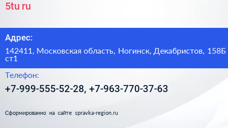 5tu.ru по адресу 142411, Московская область, Ногинск, Декабристов, 158Б ст1 в дальнейшем Организация, размещена в следующих категориях: