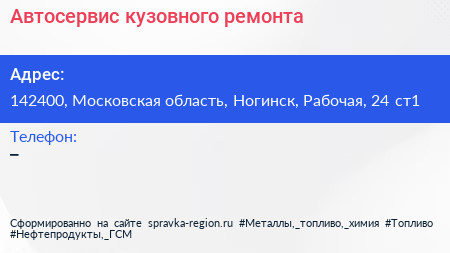 Автосервис кузовного ремонта по адресу 142400, Московская область, Ногинск, Рабочая, 24 ст1 в дальнейшем Организация, размещена в следующих категориях: