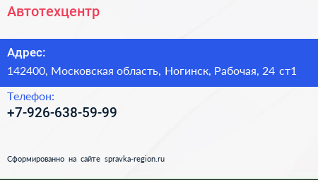 Автотехцентр по адресу 142400, Московская область, Ногинск, Рабочая, 24 ст1 в дальнейшем Организация, размещена в следующих категориях: