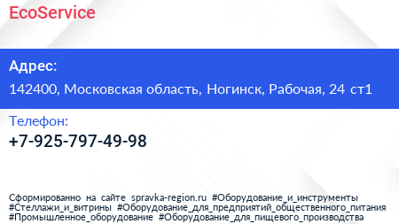 EcoService по адресу 142400, Московская область, Ногинск, Рабочая, 24 ст1 в дальнейшем Организация, размещена в следующих категориях: