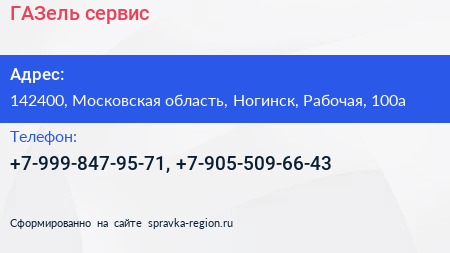 ГАЗель-сервис по адресу 142400, Московская область, Ногинск, Рабочая, 100а в дальнейшем Организация, размещена в следующих категориях: