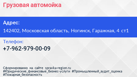 Грузовая автомойка по адресу 142402, Московская область, Ногинск, Гаражная, 4 ст1 в дальнейшем Организация, размещена в следующих категориях: