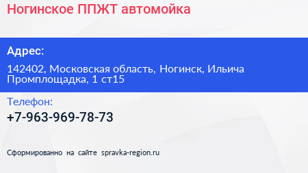 Ногинское ППЖТ, автомойка по адресу 142402, Московская область, Ногинск, Ильича Промплощадка, 1 ст15 в дальнейшем Организация, размещена в следующих категориях: