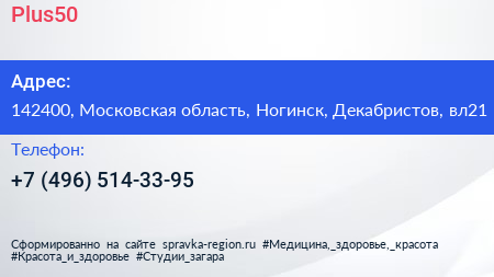 Plus50 по адресу 142400, Московская область, Ногинск, Декабристов, вл21 в дальнейшем Организация, размещена в следующих категориях: