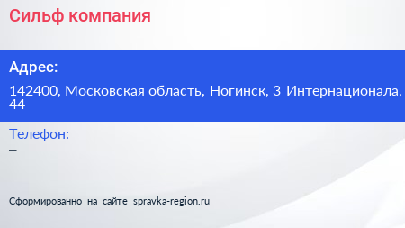 Сильф, компания по адресу 142400, Московская область, Ногинск, 3 Интернационала, 44 в дальнейшем Организация, размещена в следующих категориях: