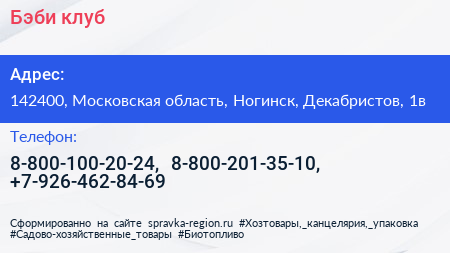 Бэби-клуб по адресу 142400, Московская область, Ногинск, Декабристов, 1в в дальнейшем Организация, размещена в следующих категориях: