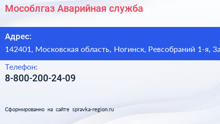 Мособлгаз, Аварийная служба по адресу 142401, Московская область, Ногинск, Ревсобраний 1-я, 3а в дальнейшем Организация, размещена в следующих категориях: