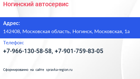 Ногинский, автосервис по адресу 142408, Московская область, Ногинск, Московская, 1а в дальнейшем Организация, размещена в следующих категориях: