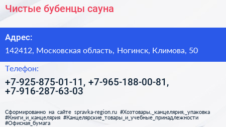 Чистые бубенцы, сауна по адресу 142412, Московская область, Ногинск, Климова, 50 в дальнейшем Организация, размещена в следующих категориях: