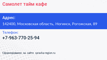 Самолет, тайм-кафе по адресу 142400, Московская область, Ногинск, Рогожская, 89 в дальнейшем Организация, размещена в следующих категориях: