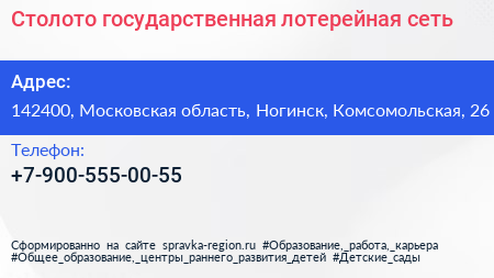 Столото, государственная лотерейная сеть по адресу 142400, Московская область, Ногинск, Комсомольская, 26 в дальнейшем Организация, размещена в следующих категориях: