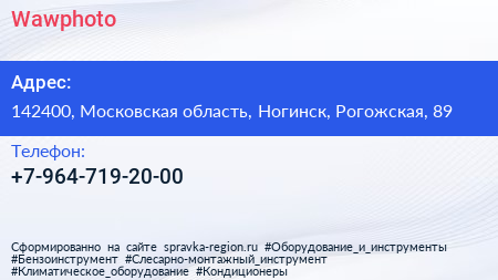 Wawphoto по адресу 142400, Московская область, Ногинск, Рогожская, 89 в дальнейшем Организация, размещена в следующих категориях: