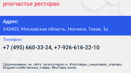 #proсчастье, ресторан по адресу 142403, Московская область, Ногинск, Тихая, 1а в дальнейшем Организация, размещена в следующих категориях:
