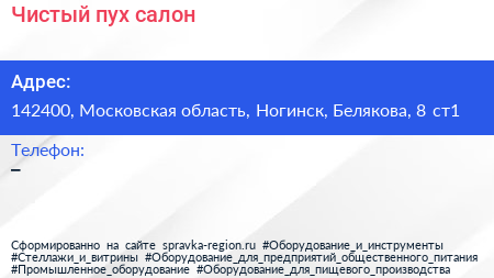 Чистый пух, салон по адресу 142400, Московская область, Ногинск, Белякова, 8 ст1 в дальнейшем Организация, размещена в следующих категориях: