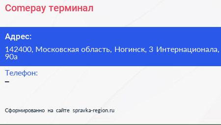 Comepay, терминал по адресу 142400, Московская область, Ногинск, 3 Интернационала, 90а в дальнейшем Организация, размещена в следующих категориях: