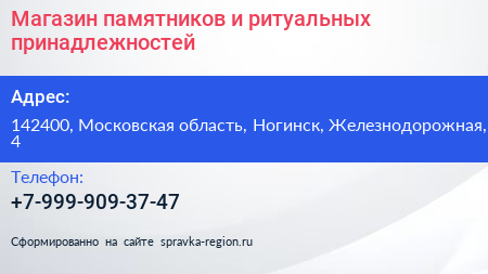 Магазин памятников и ритуальных принадлежностей по адресу 142400, Московская область, Ногинск, Железнодорожная, 4 в дальнейшем Организация, размещена в следующих категориях: