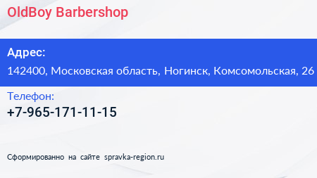 OldBoy Barbershop по адресу 142400, Московская область, Ногинск, Комсомольская, 26 в дальнейшем Организация, размещена в следующих категориях: