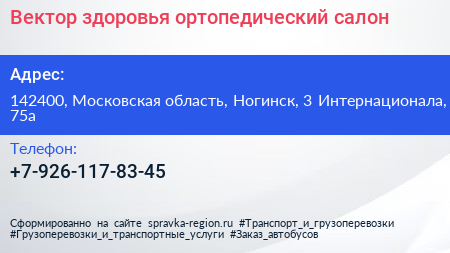 Вектор здоровья, ортопедический салон по адресу 142400, Московская область, Ногинск, 3 Интернационала, 75а в дальнейшем Организация, размещена в следующих категориях: