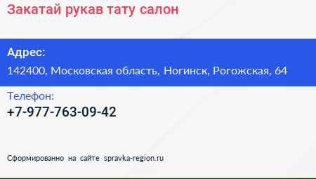 Закатай рукав, тату-салон по адресу 142400, Московская область, Ногинск, Рогожская, 64 в дальнейшем Организация, размещена в следующих категориях: