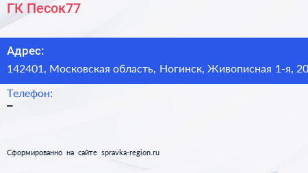 ГК Песок77 по адресу 142401, Московская область, Ногинск, Живописная 1-я, 20 в дальнейшем Организация, размещена в следующих категориях: