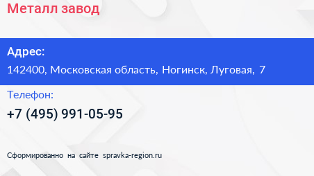 Металл-завод по адресу 142400, Московская область, Ногинск, Луговая, 7 в дальнейшем Организация, размещена в следующих категориях: