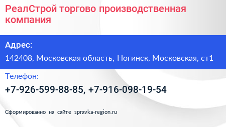 РеалСтрой, торгово-производственная компания по адресу 142408, Московская область, Ногинск, Московская, ст1 в дальнейшем Организация, размещена в следующих категориях:
