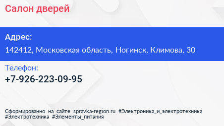 Салон дверей по адресу 142412, Московская область, Ногинск, Климова, 30 в дальнейшем Организация, размещена в следующих категориях:
