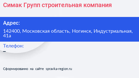 Симак-Групп, строительная компания по адресу 142400, Московская область, Ногинск, Индустриальная, 41а в дальнейшем Организация, размещена в следующих категориях: