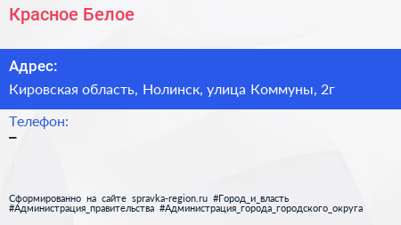 Красное & Белое по адресу Кировская область, Нолинск, улица Коммуны, 2г в дальнейшем Организация, размещена в следующих категориях: